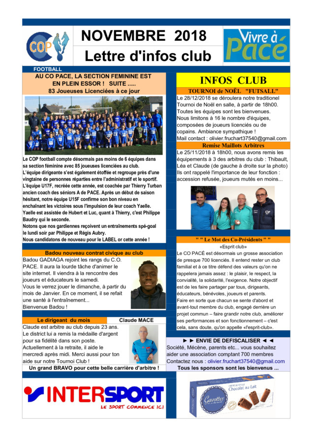 Bonjour, Le traditionnel tournoi de Futsall du club aura lieu le 28/12/2018 à compter de 18h00. 5 joueurs de champs + 3 remplaçants maxi. 4[…]