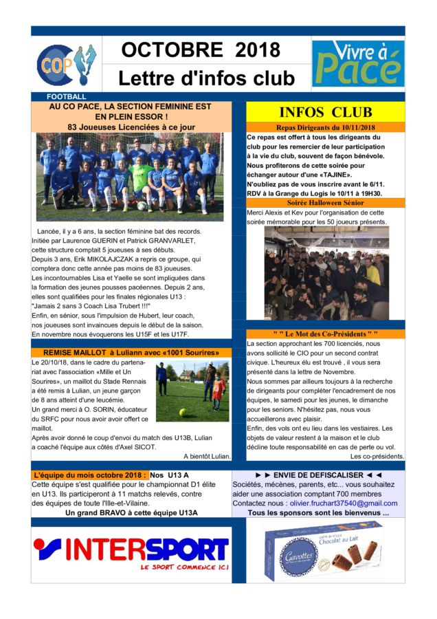 Cette année, comme vous en avez peut être entendu parler , un projet inédit a vu le jour au C.O Pacé . Celui de participer[…]