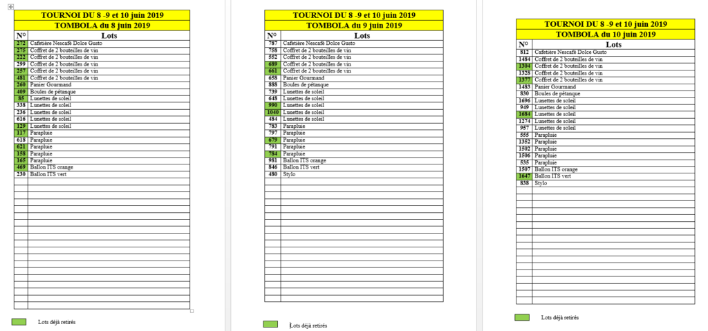 RESULTATS TOMBOLA TOURNOIS