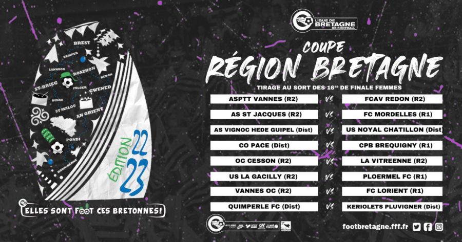 Quel magnifique cadeau de noël en avance, pour nos seniors féminines. 🎄 Le tirage au sort des 16ème de finale de la coupe de Bretagne est sorti, nos bleues et blanches accueilleront l’équipe R1 du CBP Bréquigny, pour ce match de gala. Elles vont avoir besoin de vous, let’s go les filles 💙🤍